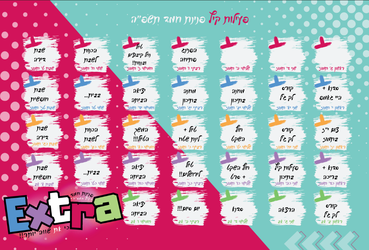 הטיולים השבועיים שלנו הם הרבה מעבר לבילוי – הם הזדמנות אמיתית לבניית קשרים, העצמה אישית וגיבוש חברתי. פעם בשבוע יוצאות הבנות למסלולי טבע, אטרקציות ופעילויות חווייתיות שמעשירות את הנפש.